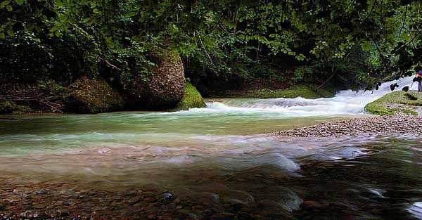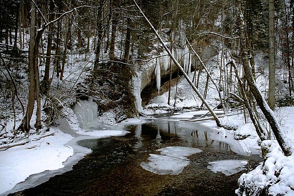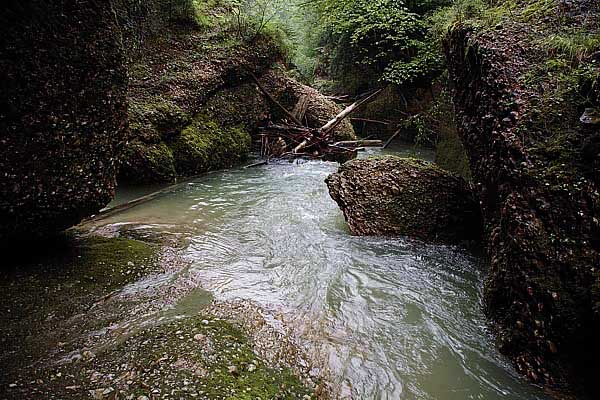 Wasser schäumt über rauen Fels, Gischt sprüht, Tropfen glitzern im Sonnenlicht. Von ängstlichen Eltern ermahnt zieht es Kinder magisch an den Wildbach. Hier, am ersten Wasserfall des Eistobel bei Isny, ist für die meisten Familien erst einmal Schluss. Kinderhände tauchen in kristallklares Wasser, suchen nach bunten Kieselsteinen, die unter Jauchzen zurück in den Fluss platschen. Die Erwachsenen machen Picknick, einige studieren die Informationstafeln zur Geologie dieses eindrucksvollen Naturschutzgebietes. Auf ihrem knapp 80 km langen Weg von der Quelle bei Oberstaufen im Allgäu bis zur Mündung in den Bodensee hat die Obere Argen dieses erstaunliche Naturschauspiel geschaffen. Auf einer 3 km langen Fließstrecke hat sich der Voralpenfluss über 50 m tief in das Grundgestein eingefressen. Dabei ist die Schlucht geologisch jung, entstanden vor etwa 15000 Jahren als Abfluss eines eiszeitlichen Schmelzwassersees. Felswände, Verblockungen, Wasserfälle und Strudellöcher machen den Reiz dieses Naturwunders aus. Es ist der Wechsel zwischen härteren und weicheren Gesteinen, die durch ihre unterschiedlichen Erosionseigenschaften diese eindrucksvolle Abfolge aus Kaskaden und romantisch-ruhigen Flussabschnitten begründet hat.