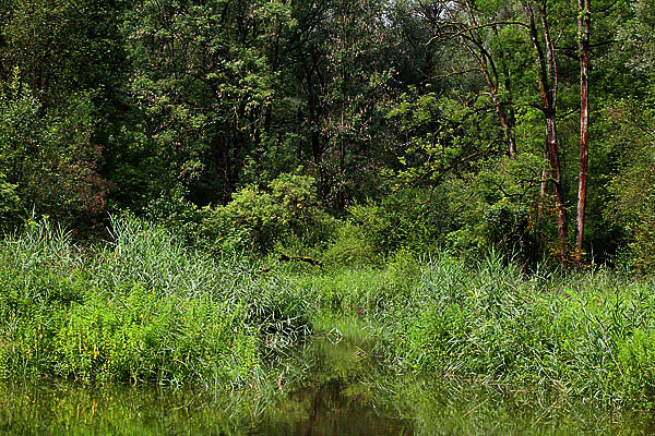 Viele Menschen – es dürfte die überwiegende Mehrzahl sein – lassen sich durch glitzernde Wasserflächen und rauschende Wälder über das wahre Ausmaß der Naturzerstörung in unserer Heimat hinwegtäuschen. Wo sollen wir auch „echte“ Naturerfahrungen sammeln? Wildnis gibt es in Mitteleuropa schon lange nicht mehr und auch die wenigen noch halbwegs ökologisch intakten Flächen verlieren sich in der alles dominierenden Kulturlandschaft. So haben wir regelrecht verlernt, wie Natur im Urzustand eigentlich aussieht. Tatsächlich hat der Einfluss der Kultur auch unsere Einstellung zur Natur ganz erheblich verändert: Wir lieben die Parks, die aufgeräumten Forste, die für das Sonntagsschuhwerk so bequemen Landwirtschaftswege und Forststraßen. Eine naturnahe Landschaft dagegen – ein wegloser Sumpf, ein an Unterholz und toten Bäumen reicher Laubwald oder ein mit Wasserpflanzen bedeckter Tümpel – empfinden wir als unattraktiv, ja als bedrohlich. Betreten dann noch als abschreckend empfundene Tiere die Bühne – Fliegen, Spinnen, Mücken oder gar Schlangen und schleimige Schnecken – dann ist es mit der Naturliebe der meisten Zeitgenossen schnell vorbei. Wie sehr unser Verhältnis zur Natur kulturell geprägt ist, wird auch in unserem Vokabular deutlich. So weckt ein eigentlich neutraler Begriff wie "Wildnis" eher negative Assoziationen, was in dem abgeleiteten Wort "verwildert" sehr deutlich zum Ausdruck kommt. Wenn wir also unsere natürlichen Ressourcen mit ihrer Biodiversität erhalten wollen, dann müssen wir auch unsere innere Einstellung zur Natur überarbeiten. Wir müssen lernen, die Natur in ihrer Ursprünglichkeit zu schätzen und zu lieben – einschließlich aller Organismen und unabhängig von unseren tradierten oder anerzogenen Sympathien und Abneigungen. Natürliche Auwälder sind die Zentren der Artenvielfalt Mitteleuropas: Auf kleinstem Raum bieten sie etwa der Hälfte unserer Tier- und Pflanzenarten eine Heimat. Gehen auch die letzten unserer noch verbliebenen Auwälder verloren, dann verschwindet ein wesentlicher Teil unserer Fauna und Flora. Ein Horrorszenario? Nein, für manche dieser meist unscheinbaren Lebewesen, sogenannte Urwaldreliktarten, gibt es tatsächlich nur noch einige wenige Fundorte. Es gibt Organismen, bei denen ist es nur noch ein einziger im ganzen Land. Tatsächlich sind in Bayern nur noch wenige Hektar naturnahen Auwaldes erhalten geblieben. Um einmal einen „richtigen“ Auwald zu erleben, werden wir daher lange suchen müssen. Eines dieser Refugien ist das Naturwaldreservat Mooser Schütt bei Rennertshofen. Hierher gelangt man nicht zufällig, denn erstens muss man laufen (oder radeln) und zweitens sind die Wege schlecht, besonders nach Niederschlägen. Und dann gibt es im Sommer Mücken ohne Ende, ganz zu schweigen von anderen "Ekeltieren", von Brennnesseln und Brombeerranken. Aber gerade deswegen wollen wir ja auch einen Besuch wagen.