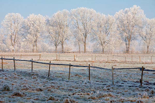 Pferdekoppel im Raureif, Donauried bei Langenau