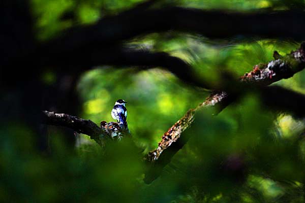 Auch in den ehemaligen Auwäldern, wenn sie nicht ohnehin durch Siedlungen, Industrieanlagen oder Landwirtschaft vernichtet wurden, führt die Forstwirtschaft das Regiment. Allerdings blieben entlang der Flusstäler an einigen Stellen noch recht naturnahe Wälder erhalten, die heute seltenen Tierarten als Refugium dienen. Spechte sind daher Bioindikatoren. Nur in ausgedehnten, baumartenreichen Wäldern mit viel stehendem und liegendem Totholz in unterschiedlichen Zersetzungsstadien kommen alle einheimischen Spechtarten nebeneinander vor. So wie der Mittelspecht, der mehr als alle anderen Arten Morschholz in einem fortgeschrittenen Verrottungsstadium für seine Nahrungssuche benötigt. In den noch verbliebenen Auwäldern mit hohem Totholzanteil ist die Chance, einem Mittelspecht zu begegnen, recht hoch, zumal er sich als Standvogel das gesamte Jahr hier aufhält. Allerdings muss man schon genau hinschauen, ist er doch leicht mit dem viel häufigeren Buntspecht zu verwechseln. Weibliche Buntspechte haben eine schwarze Kopfplatte, Männchen schmückt ein zusätzlicher roter Nackenfleck während der Mittelspecht – beide Geschlechter sind gleich gefärbt - eine rein rote Kopfplatte aufweist. Eine Verwechslungsgefahr besteht aber besonders mit jungen Buntspechten, die ebenfalls eine rote, aber schwarz abgesetzte Kopfplatte tragen. |