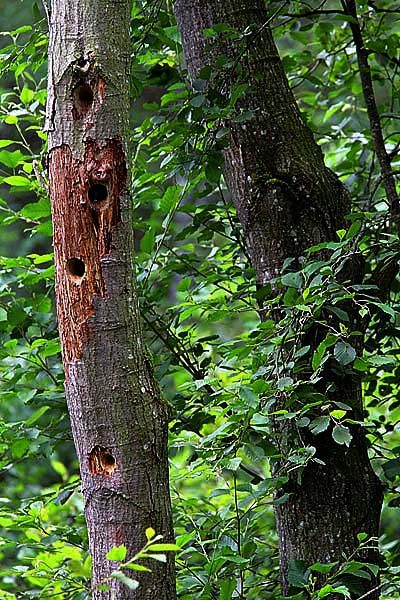 Außer dem Weißrücken- und dem Dreizehenspecht, die Bewohner natürlicher Nadelwälder des Gebirges sind, kommen alle anderen heimischen Spechte in unseren Auwäldern vor. Wendehals, Buntspecht, Grünspecht und Schwarzspecht besiedeln zwar auch andere Waldbiotope, aber für Grauspecht, Kleinspecht und ganz besonders für den Mittelspecht bilden totholzreiche Auwälder den Schwerpunkt ihrer heutigen Verbreitung. Es ist nicht so, dass diese drei Spechtarten andere Waldtypen meiden würden. Ganz im Gegenteil, man findet sie eigentlich in allen reich strukturierten Laubmischwälder mit einem hohen Anteil alter Bäume, denn hier gibt es absterbendes und totes Holz in Hülle und Fülle. Sei es im stehenden Totholz der Baumkronen und Stämme oder im liegenden Tot- oder Moderholz: Hier finden Spechte ausreichend Nahrung in Form von Tausendfüßern, Spinnen und Insekten samt ihren Larven – und das auch in den mageren Wintermonaten. Naturnahe Laubwälder: Wo findet man die heute noch in Mitteleuropa? Tatsächlich werden die Bäume in unseren forstwirtschaftlich genutzten Wäldern selten alt und zwei Drittel der Holzproduktion eines Waldes wird bereits lange vor der Alterungsphase der Bäume „geerntet“. Die Forstwirtschaft unterbricht den natürlichen Lebenszyklus der Bäume. Daher fehlt es in unseren Wäldern an Totholz und damit an holzverwertenden Organismen und deren Konsumenten, den Spechten (Vergleiche: Biomasse, Forstwirtschaft und das Ökosystem Wald). |
